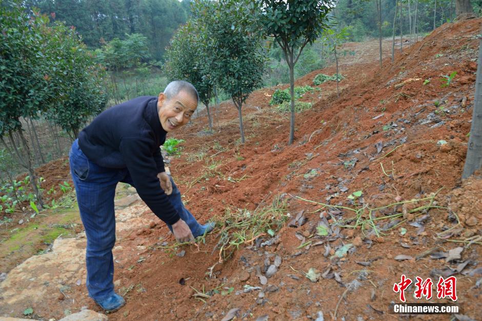 11月30日,在湖北省宜都市枝城镇大堰村八组,75岁的钟世发、陈明英老俩口望着家门口的“巨无霸”红薯说道。钟世发介绍,他今年三四月份在自家一块0.1亩的地里种下了红薯,不久前他和老伴决定把红薯挖出来,没想到一下子挖出了700多斤,其中最大的一个红薯重达37斤,直径为40厘米。除此之外,钟世发还挖出了22斤、20斤、12斤重的大红薯各一个。钟老表示,红薯能长这么大,主要原因是土质疏松且是黄土,再就是施的胼肥与复合肥,加之雨水好,所以长成了“巨无霸”。冉德强 摄
