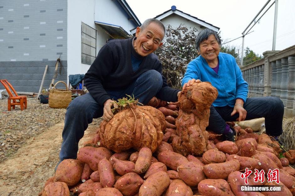 湖北一村民种出37斤红薯 堪称“巨无霸”