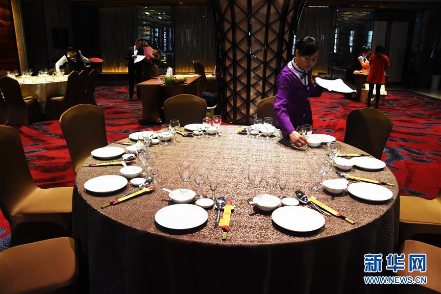 12月2日,一名参赛选手在进行中餐宴会摆台。新华社发(王忠虎 摄)