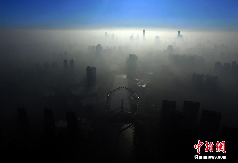 12月2日上午,地标建筑天津之眼“霾”在雾中。 中新社记者 佟郁 摄