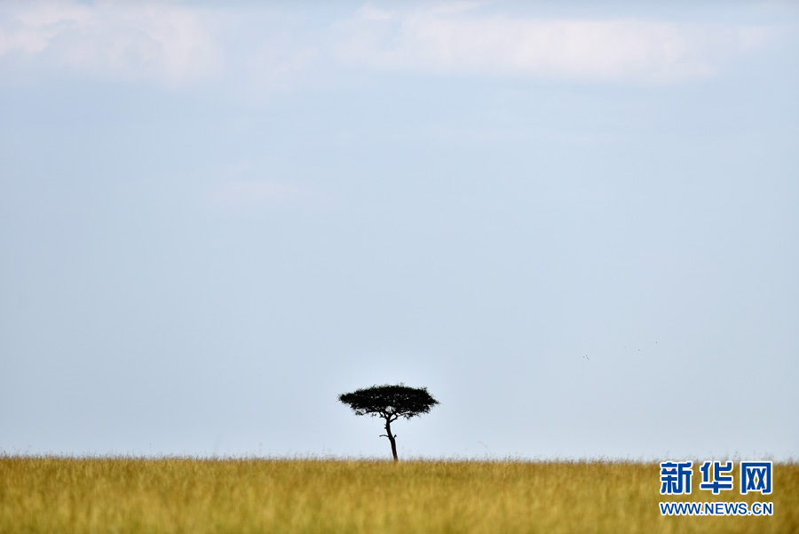 这是8月14日在肯尼亚马赛马拉国家野生动物保护区拍摄的东非草原典型面貌——“稀树高草”。 新华社记者 孙瑞博摄