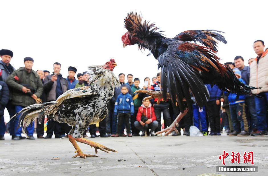 比赛现场,20多对体型高大,魁梧强健,性情凶猛的斗鸡,频频使出“泰山压顶”、“白鹤亮翅”、“九阴白骨爪”等招式,紧张激烈、惊险刺激的打斗场景,让围观者时而手舞足蹈,时而屏住呼吸,还有的拿出相机、手机记录下精彩的瞬间。 年磊 摄