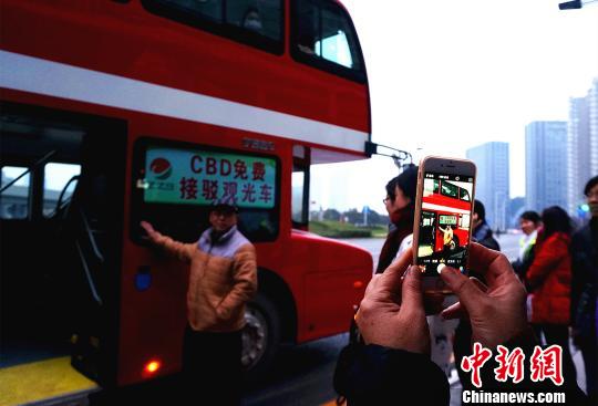 亮相郑州的英式双层巴士,从12月11日开始到上合会结束,市民可免费乘坐,观光城市风景。 周小云 摄