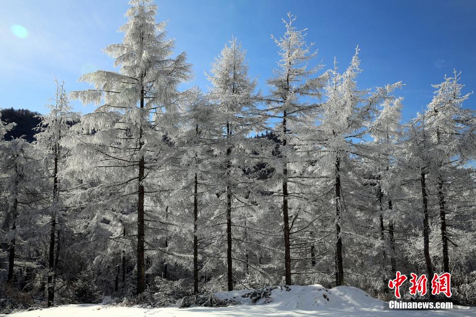 近日,受强冷空气影响,秦岭腹地的平河梁自然保护区入冬后首次出现雾凇景观,晶莹的雾凇把平河梁山脉装扮得幻如仙境。一眼望去,玉树琼枝,洁白晶莹,犹如梨花盛开。让人恍惚中感受到,忽如一夜寒风来,千树万树梨花开。杨宁 摄