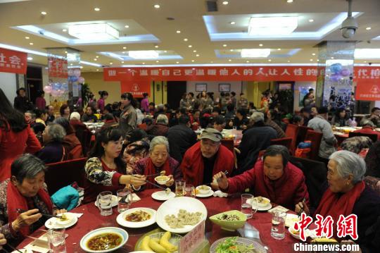 百名“空巢老人”共享爱心饺子。 杨艳敏 摄