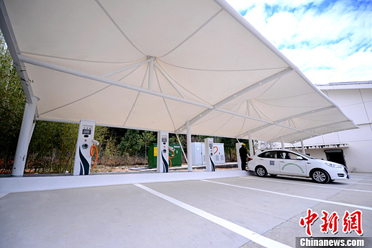12月21日上午,随着一台电动汽车在京台高速公路南平境内小桥服务区充电成功,该服务区电动汽车快速充电站正式投入试运行,这也是福建省境内首座通电的高速公路服务区快速充电站。中新社记者 陈书忠 摄