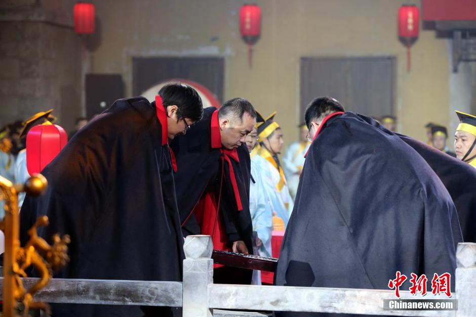 12月21日夜子时,人们又相聚于古老的贡胶工坊,举办了一场别开生面的九朝贡胶开炼告祭礼,“启井封”、“迎神”、“献礼”、“望撩”、“汲水”……在重温古老而庄重的仪式中,体会阿胶文化的绵长。图为古阿井“启井封”仪式。 梁犇 摄