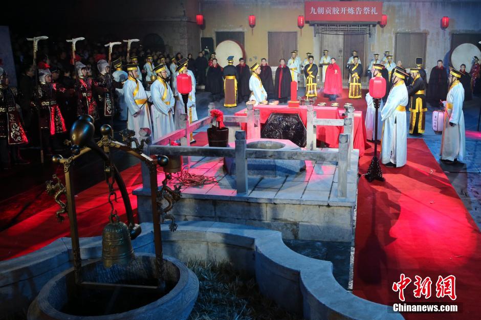 国家级非物质文化遗产东阿阿胶制作技艺代表性传承人秦玉峰身着红色礼服,双手拈香,点燃后举过头顶,向被封存一整年的阿井礼拜,现场气氛庄严肃穆,近千名围观者屏住呼吸,目睹了整个取水过程。 梁犇 摄