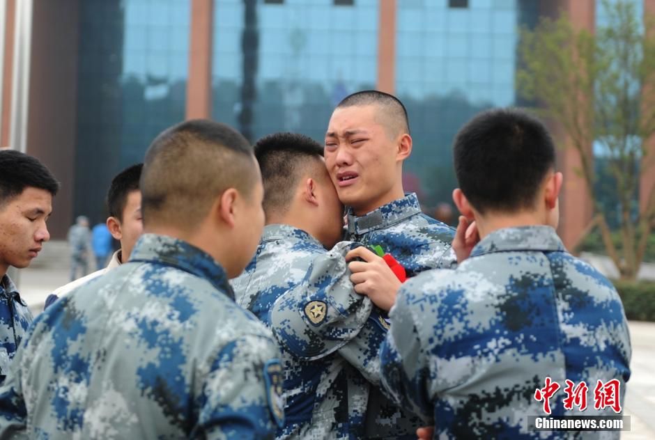 12月28日,湖南省230名定向培养直招士官入伍欢送仪式在长沙航空职业技术学院举行,数百位家长与亲属到学校含泪送别孩子。杨华峰 摄