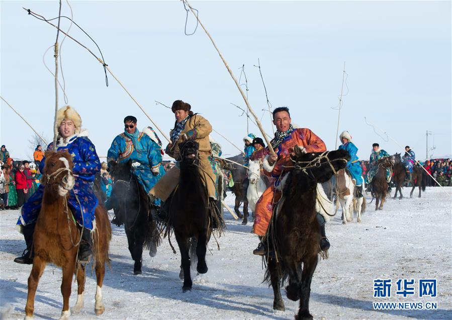 12月28日,牧民手持套马长杆在银冬驼文化节上盛装出场。当日,内蒙古克什克腾旗第七届银冬驼文化节在达日罕乌拉苏木开幕。众多牧民身着节日盛装,参加赛骆驼、赛马、搏克等独具蒙古族特色的活动。新华社记者 李任滋 摄