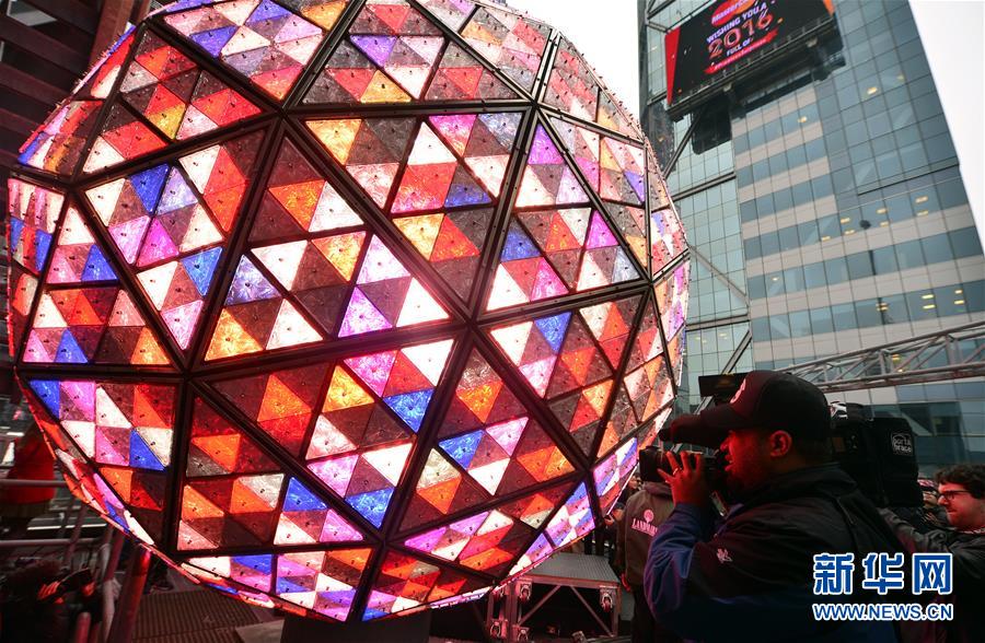随着新年的临近,纽约时报广场倒计时庆典的准备工作已经进入最后阶段。时报广场的巨型水晶球是迎新年活动的重要标志,由32000个LED灯组成。每年12月31日晚,纽约时报广场都会举办跨年庆典。当午夜钟声响起之时,水晶球缓缓落下,庆祝新一年的到来。 新华社记者王雷摄