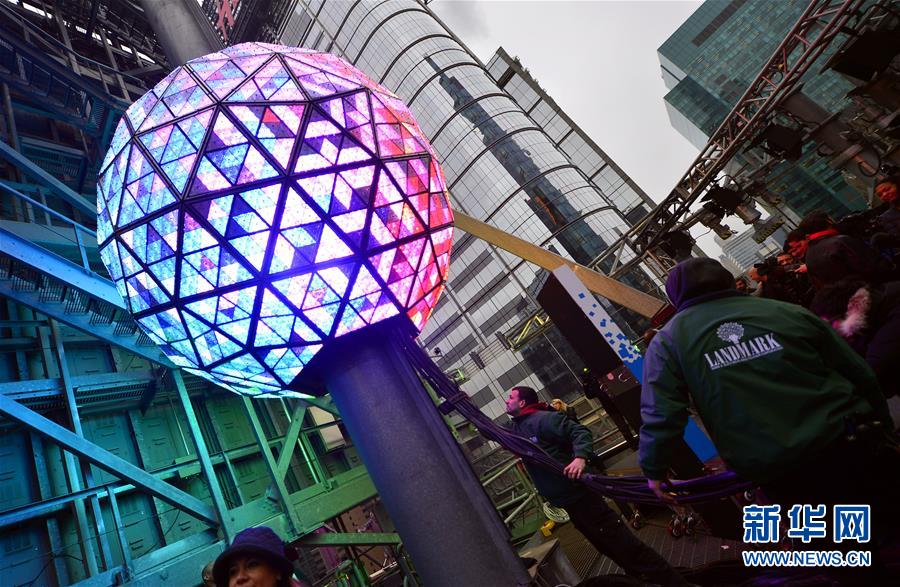 12月30日,在纽约时报广场,技术人员对新年夜倒数活动使用的水晶球进行升降测试。 新华社记者王雷摄
