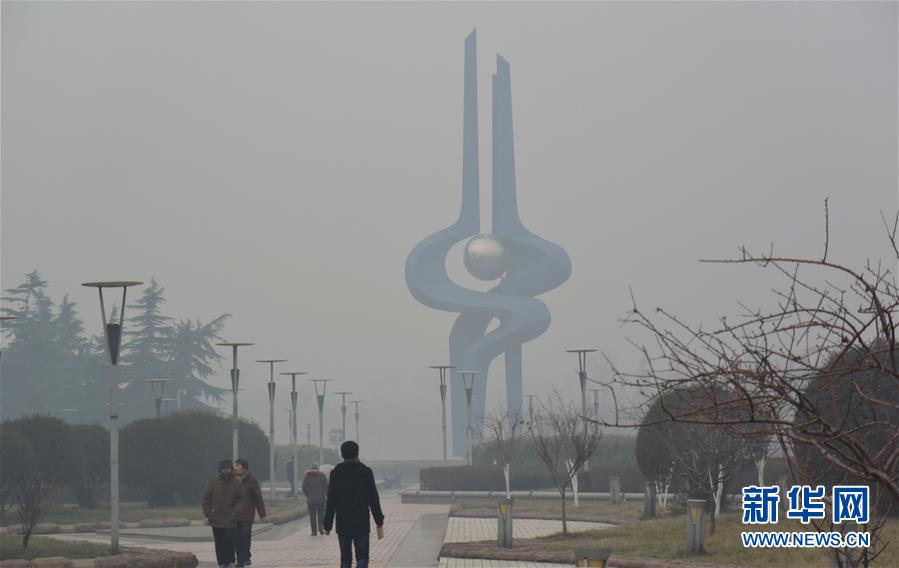 重度霾天气下的济南市区(1月3日摄)。 新华社记者 徐速绘 摄