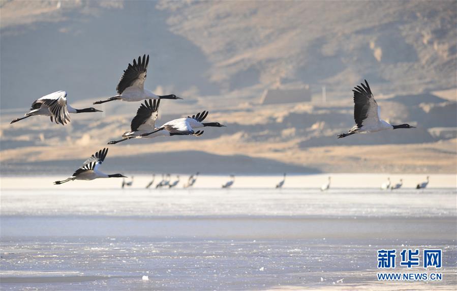 1月2日,在位于西藏林周县的雅鲁藏布江中游河谷黑颈鹤国家级自然保护区,黑颈鹤在休憩、飞翔。近年来,由于冬季气候温暖,加上大量遗留的青稞、小麦以及草根为黑颈鹤提供了丰富的食物,雅鲁藏布江中游河谷黑颈鹤国家级自然保护区逐步成为黑颈鹤越冬的理想家园。新华社记者 张汝锋 摄