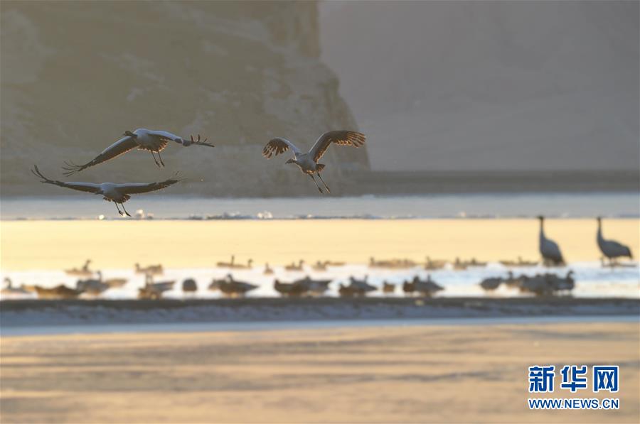 1月2日,在位于西藏林周县的雅鲁藏布江中游河谷黑颈鹤国家级自然保护区,黑颈鹤在休憩、飞翔。近年来,由于冬季气候温暖,加上大量遗留的青稞、小麦以及草根为黑颈鹤提供了丰富的食物,雅鲁藏布江中游河谷黑颈鹤国家级自然保护区逐步成为黑颈鹤越冬的理想家园。新华社记者 张汝锋 摄