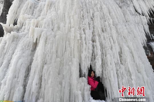 太原村民自制“冰雪世界”景区 百米冰瀑场面壮观