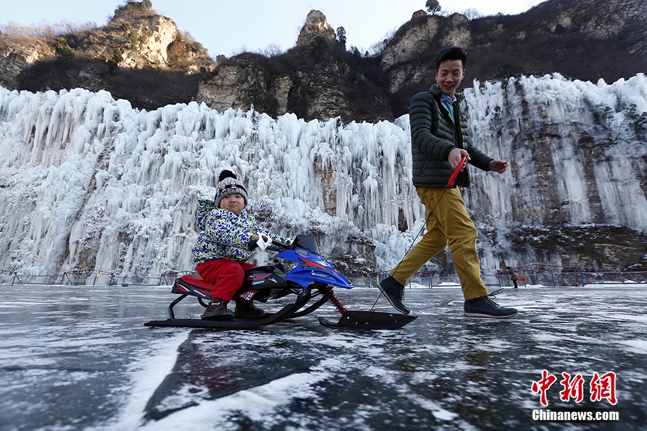 北京壮美冰瀑飞流醉游人 高达百米晶莹剔透
