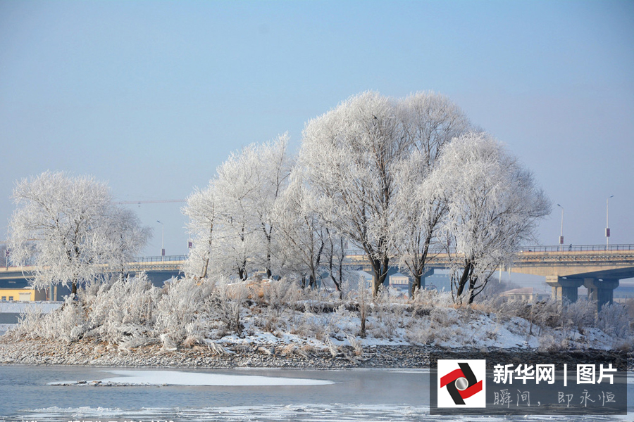 2016年1月10日,受适宜的温度影响,吉林省吉林市松花江两岸呈现出玉树琼花、洁白无暇的雾凇奇观,吸引了众多游客沉醉在2016年首场最美丽的雾凇美景前驻足观赏,与久违的雾凇美景合影留念。