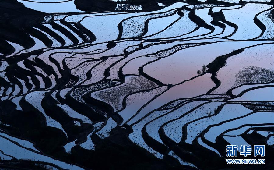 这是云南省红河州元阳县的哈尼梯田美景(1月12日摄)。