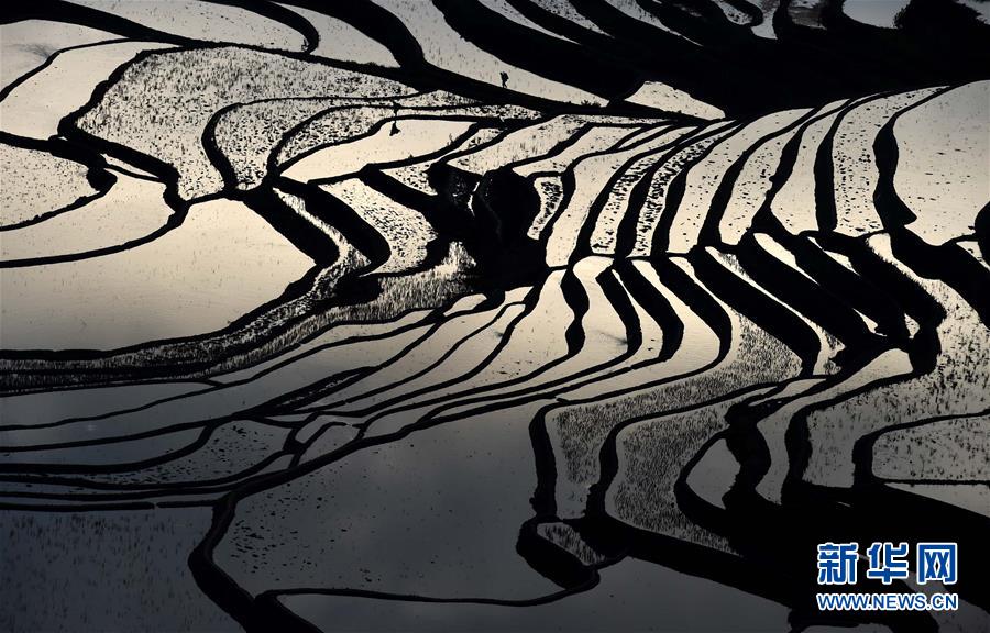 这是云南省红河州元阳县的哈尼梯田美景(1月12日摄)。