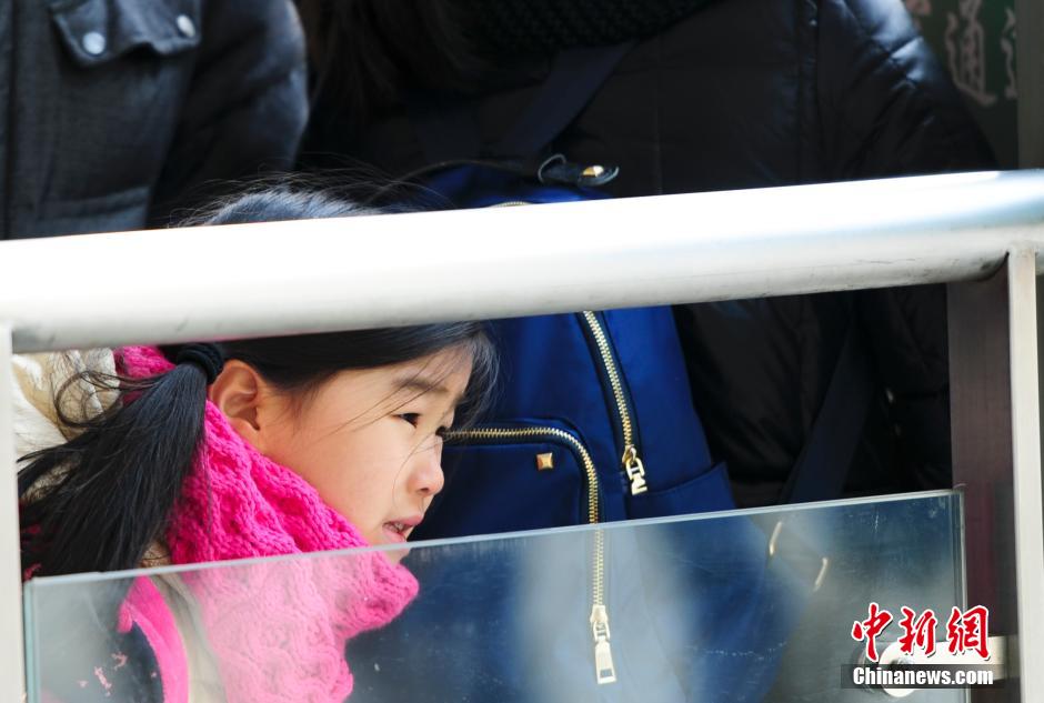 1月24日,济南火车站,小女孩等候乘车返乡。济南火车站春运首日,济南遭遇自1971年以来最冷天,气温低至零下18℃,旅客在“霸王级”寒潮中踏上归途。据中国交通运输部预计,2016年春运期间,发送旅客将超过29.1亿人次。