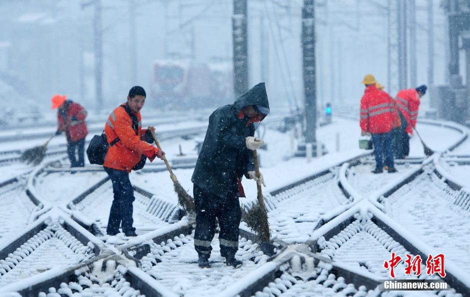 江西再降大雪 铁路部门除冰雪保旅客出行安全