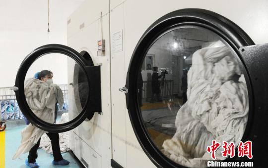 图为被件进行“入锅”洗涤。 杨艳敏 摄