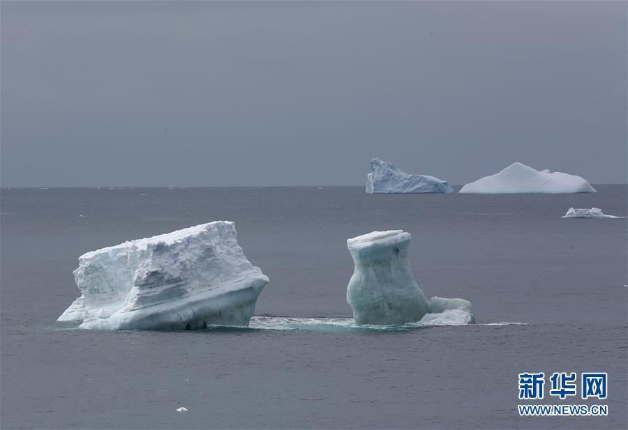 南极半岛附近海域形状奇特的冰山(2015年12月28日摄)。