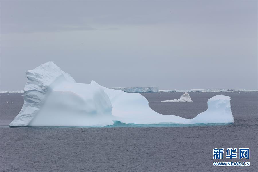 南极半岛附近海域形状奇特的冰山(2015年12月28日摄)。