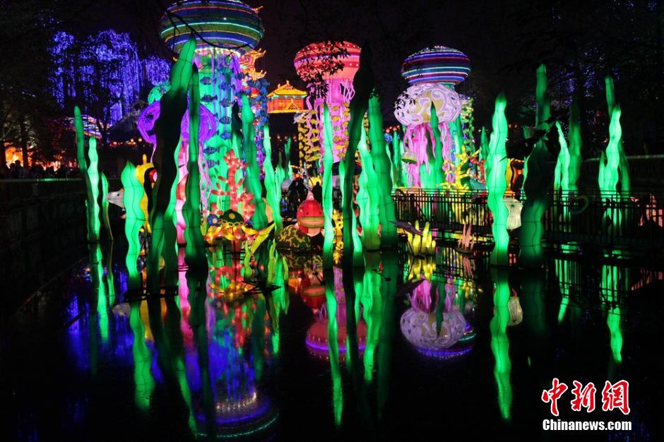 11万件现代光源共128组彩灯让整个园区流光溢彩、璀璨夺目。 张浪 摄