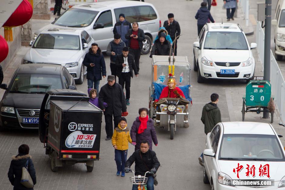 猴年将至 太原街头“美猴王”送快递