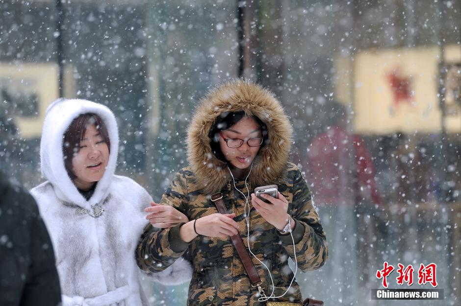 2月13日,辽宁迎来了农历猴年的首场强降雪。据辽宁省气象部门消息,当日午后全省气温下降幅度达10到14℃;本溪地区及岫岩、宽甸等地暴雪,大连、沈阳等地迎来大雪或中雪。图为人们在漫天飞雪中出行。 孙昊声 摄