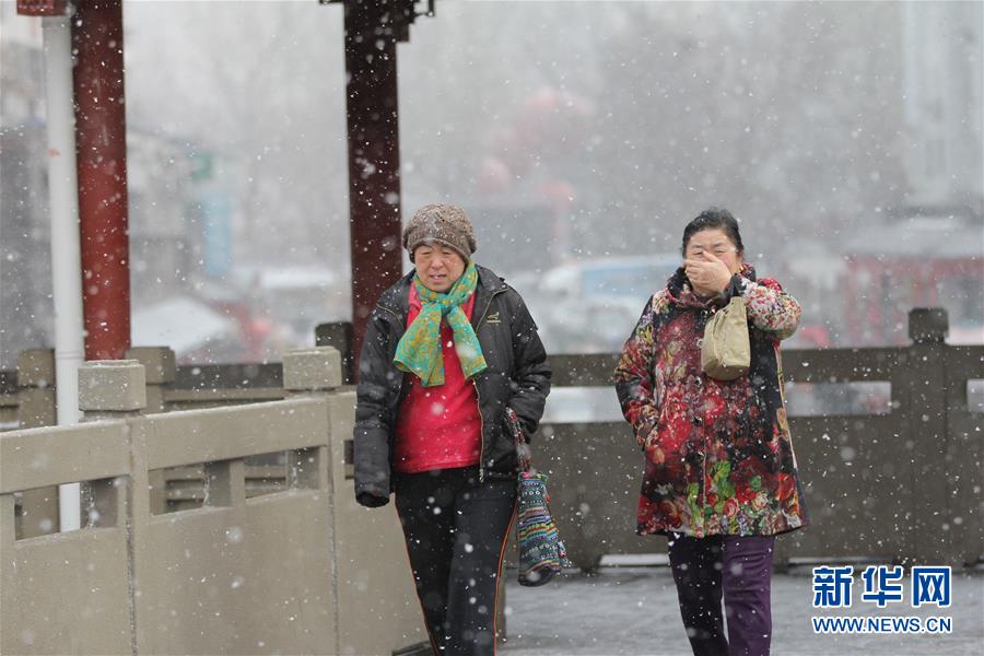 2月14日,青岛市民冒雪出行。 2月11日至14日,受寒潮影响,我国中东部地区大风降温和雨雪天气持续。中央气象台14日18时继续发布寒潮黄色预警。 新华社发(黄杰显摄)