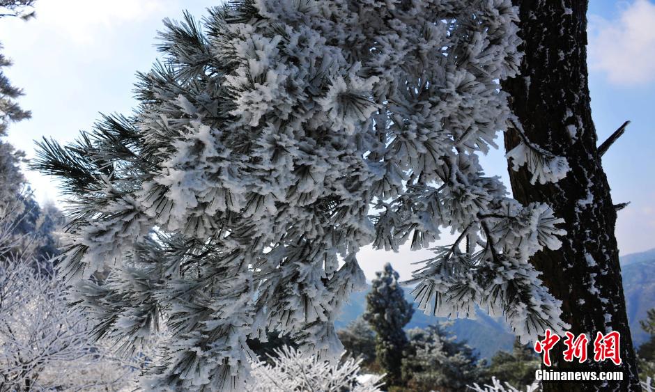 2月15日,浙江省仙居县苗辽山上白雪皑皑,冰挂雾淞晶莹剔透,在阳光下熠熠生辉。 中新社记者 王华斌 摄