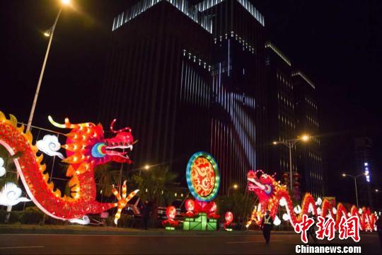 在各式特色花灯的衬托下美丽的福州东江滨公园氤氲出浓浓的元宵气氛。 陈晓静 摄