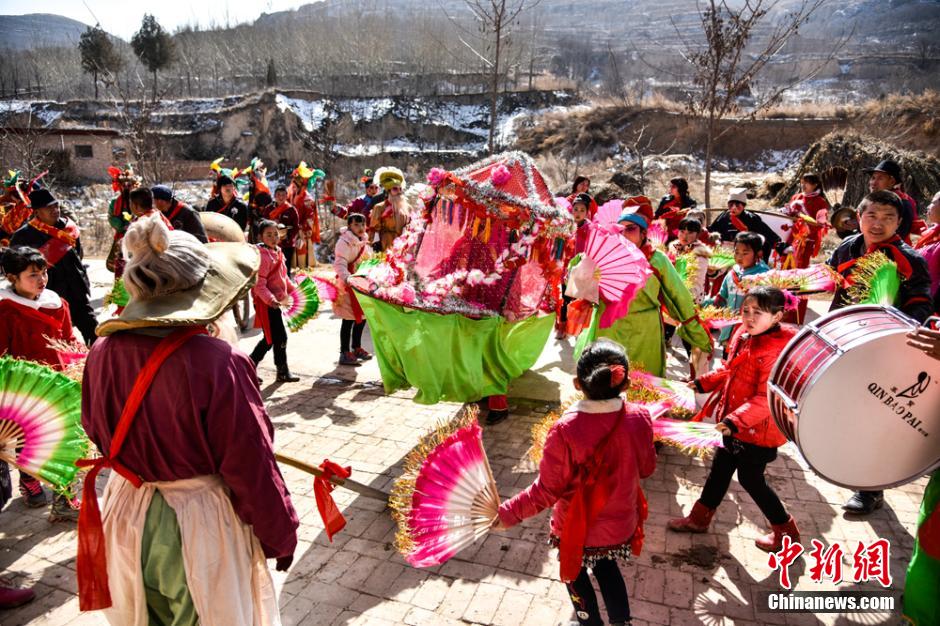 图为崆峒区白水镇马莲村社火表演。 张文军 摄