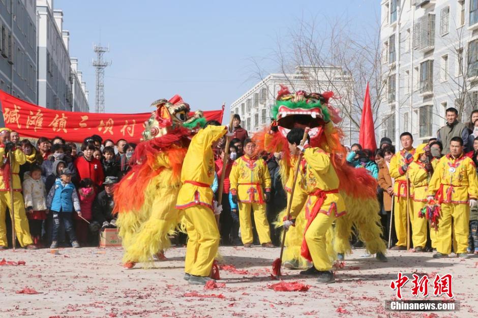 农历正月初九,张掖甘州区碱滩镇三坝村民俗社火表演。当日,该村群众自编自演的民俗社火在村文化广场展演吸引本村和周边村社的群众观看。 成学磊 摄