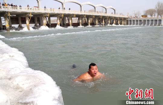 新疆博湖县冬泳健将畅游开都河庆元宵