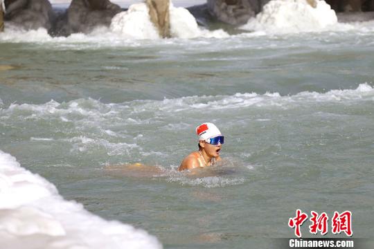 长期坚持冬泳可以达到强身健体的作用,冬泳健将们也以这种独特的方式庆祝即将到来的元宵佳节,一名女运动员成为一道靓丽风景。 何阳 摄