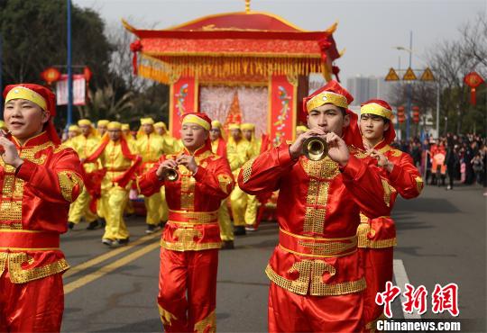 图为宁波镇海元宵招宝祈福巡游活动现场 汤越 摄