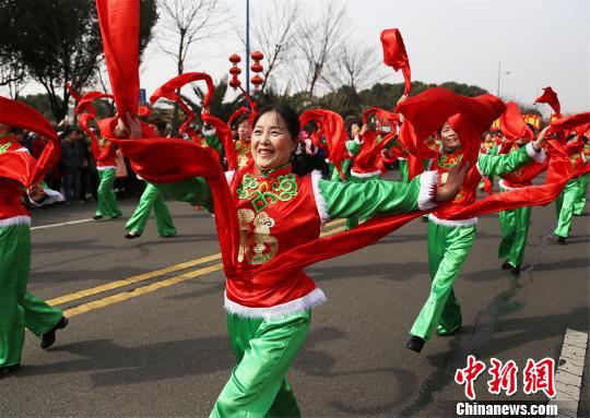 图为宁波镇海元宵招宝祈福巡游活动现场 汤越 摄