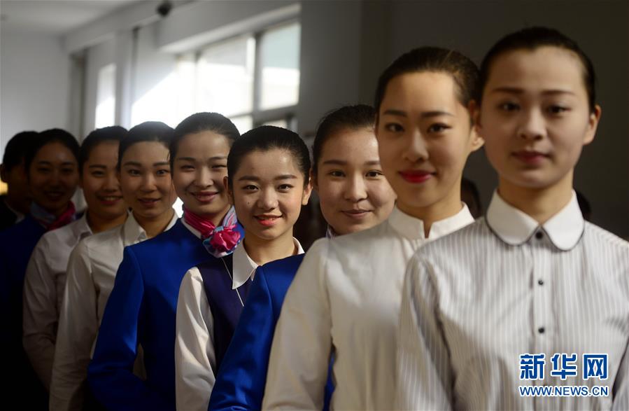 2月20日,在山东交通学院2016年“铁路动车乘务专业考试”现场,考生们等待面试。当日,山东交通学院“铁路动车乘务专业招生考试”开始,考试包括形体面试、才艺展示、英语口试。来自全省的1345名男女考生报考,学校共招生100人,招生比例13:1。今年是该校“动乘”专业招生的第四年,同时也是该专业首批学生的毕业年,随着中国高铁发展迅速,就业缺口大,目前,首批学生已全部被用人单位签订实习协议,进入实习阶段。新华社发(赵晓明 摄)