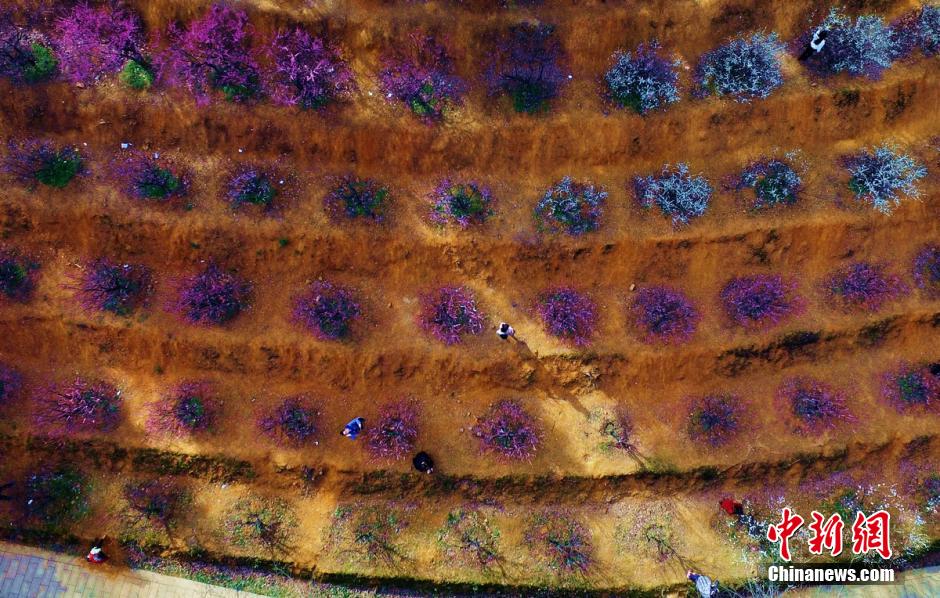 2月20日,三湘大地气温逐渐回升,湖南省森林植物园千株梅花竞相绽放,众多游客置身于花海中,与这难得的美景合影留念。 杨华峰 摄