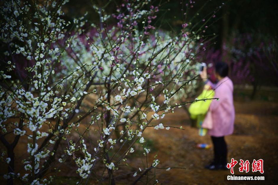 2月20日,三湘大地气温逐渐回升,湖南省森林植物园千株梅花竞相绽放,众多游客置身于花海中,与这难得的美景合影留念。 杨华峰 摄