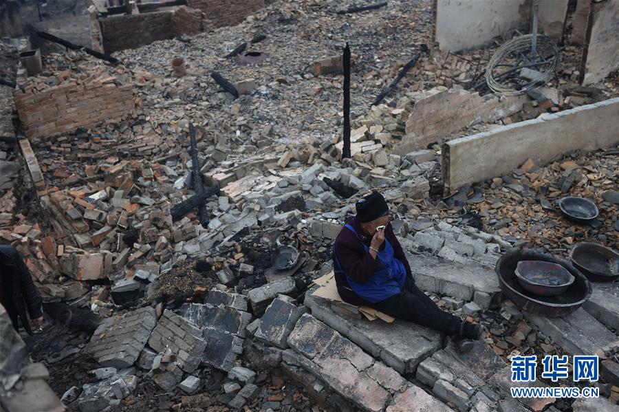 2月21日,温泉村一名村民在自家房屋的废墟上哭泣。 2月20日18时许,贵州省黔东南苗族侗族自治州剑河县岑松镇温泉村发生寨火。据初步统计,寨火造成120人受灾,60余栋房屋被烧毁。目前,大火已全部扑灭,暂无人员伤亡报告,受灾群众的饮食和居住得到初步安置。火灾原因及具体受灾情况还在进一步调查核实中。新华社记者 欧东衢 摄