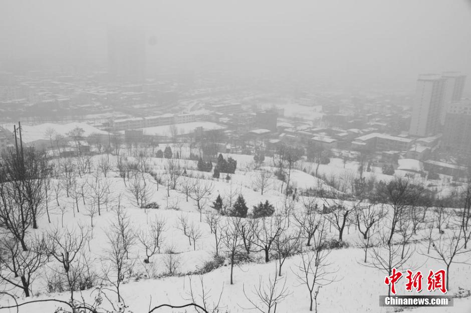 甘肃东南部元宵节迎春雪 雪中美景如国画