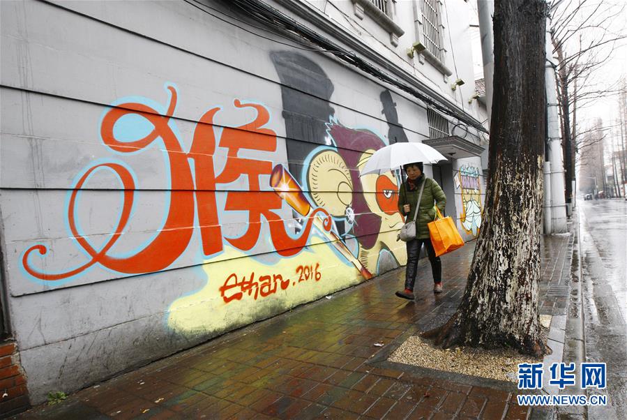 2月22日,一名行人从位于上海虹口区甜爱路上的涂鸦墙旁走过。当日,位于上海虹口区甜爱路的景观涂鸦墙绘制完成。涂鸦墙以“又见爱”为主题,多位沪上艺术家历时近3个月时间创作完成。 新华社记者方喆摄