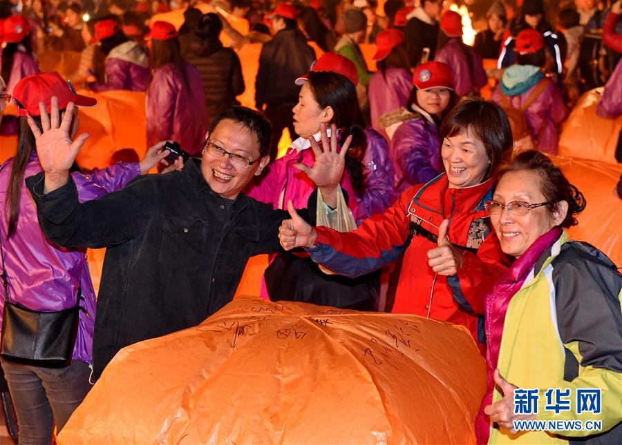 2月22日,市民在平溪元宵祈福灯会上留影。当晚,一年一度的台湾平溪元宵祈福灯会举行,1600盏“天灯”在数万民众的欢呼声中放飞夜空,祈福新年风调雨顺,平安幸福。 新华社记者张国俊 摄
