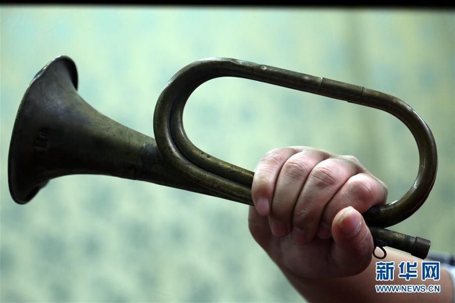 2月22日,福建省中央苏区博物馆工作人员首次展示收藏的中国工农红军第五军军号。这只军号纯铜材质,喇叭口外沿刻有“中国工农红军第五军第十三师”字样,号身中部刻有五角星等图案。 新华社记者 彭张青 摄