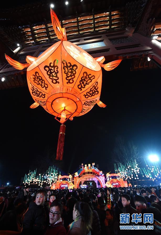 2月22日晚,游人在夫子庙广场观灯游玩。当晚,在江苏南京夫子庙秦淮风光带举办的秦淮灯会彩灯齐放,人们前来观灯闹元宵。 新华社记者孙参摄